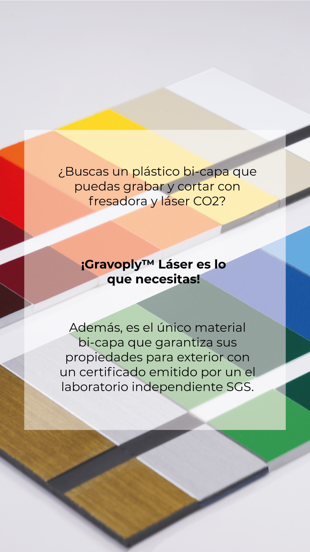 Plancha de 610x610 mm y 1,6 mm de espesor. Material ABS de dos capas específico para grabado y corte por fresa.